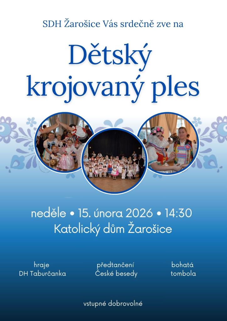 Zveme vás na Dětský krojovaný ples, který se uskuteční 15. února 2026. Tato akce bude zahrnovat předtančení České besedy, hudební doprovod v podání DH Taburčanka a také bohatá tombola.