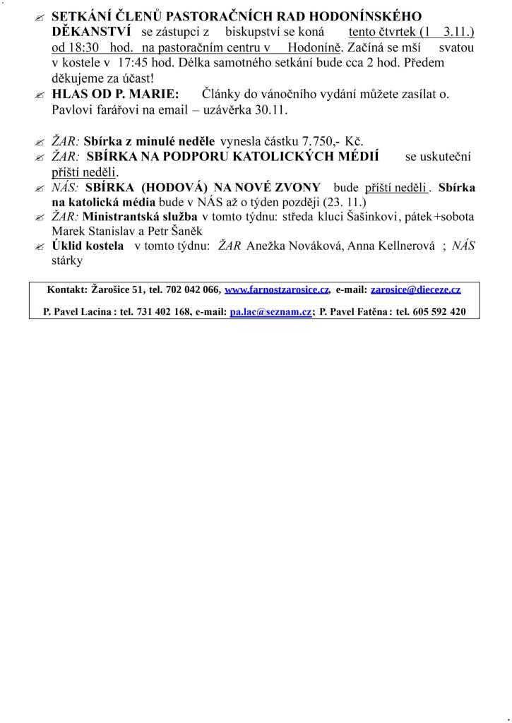 Farnost ŽAROŠICE týden 9. – 16. listopadu 2025